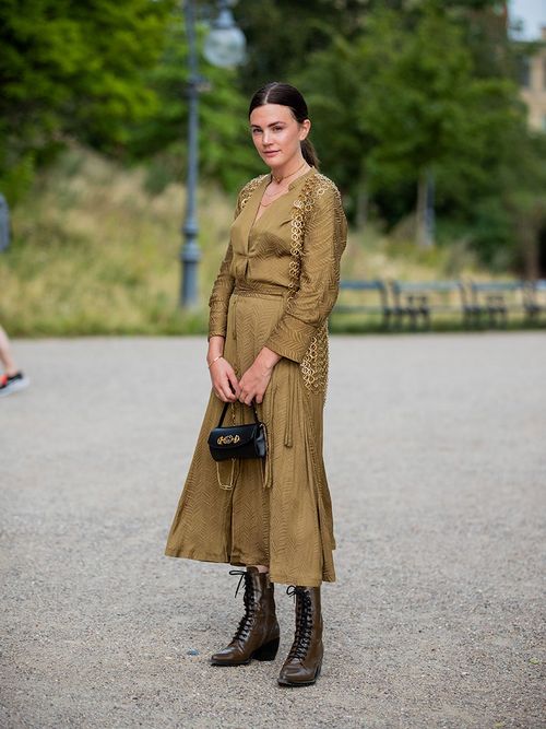 Madelynn Furlong looks cooler than cool in this maxi & boots pairing. Create your own winter-approved look by layering a thick pair of tights and thermals under your own maxi dress.