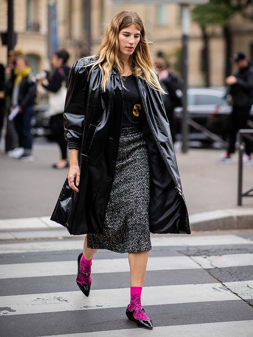 You can’t possibly get through a rainy day without a vinyl trench. Forget your beige trench, this is your new, up-to-date rain jacket. Pair it with some flat shoes and be ready to avoid puddles in style.