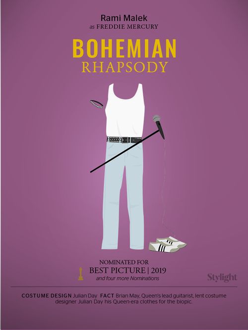 In Bohemian Rhapsody, Rami Malek was able to transform into Freddie Mercury with help from costume designer Julian Day. Queen’s lead guitarist, Brian May, who was also an executive music producer and creative consultant on the film, actually lent Day some of his own Queen-era pieces from the ’70s and ’80s for the film.