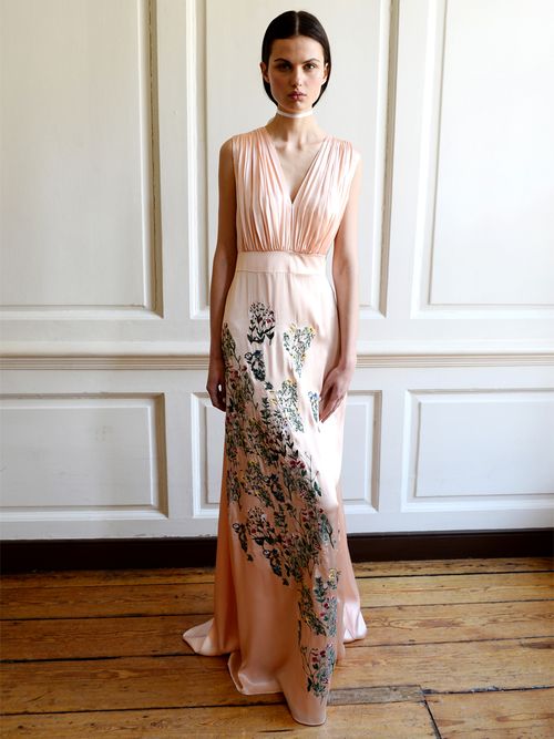 Backstory: Royal College of Art graduate Alice Archer was discovered by Simon Burstein of Browns. He loved her work so much that he set up The Place London to showcase her talent, where she also has a studio. Her collections harness a unique technique that combines print and embroidery, exploring the use of color and texture simultaneously. Alice uses this process to translate the oil painted surfaces of the paintings she has been inspired by into embroidery, resulting in elaborate floral detailing on luxurious fabrics.